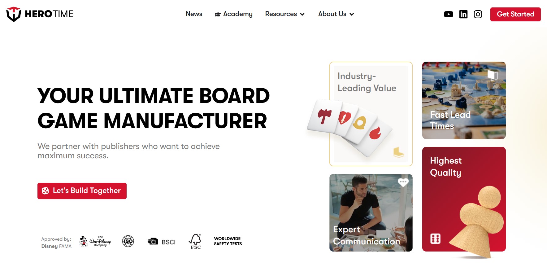 You can view our industry certificates on our board game manufacturing page. Not all factories will list these publicly, so make sure to ask your sales rep about certification when you compare manufacturers from your shortlist.